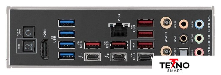 Описание внутренних разъемов | Fan and Cooling related 1 x 4-pin CPU Fan header1 x 4-pin CPU OPT Fan header1 x 4-pin AIO Pump header4 x 4-pin Chassis Fan headers1 x W_PUMP+ header1 x 2-pin Water In header1 x 2-pin Water Out header1 x 3-pin Water Flow headerPower related 1 x 24-pin main power connector2 x 8-pin +12V power connector1 x 8-pin PCIe power connectorStorage related 5 x M.2 slots (Key M) 4 x SATA 6Gb/s portsUSB 1 x USB 20Gbps connector (supports USB Type-C) 2 x USB 5Gbps headers support 4 additional USB 5Gbps ports2 x USB 2.0 headers support 4 additional USB 2.0 portsMiscellaneous3 x Addressable Gen 2 headers1 x AURA RGB header1 x FlexKey button 1 x Front panel audio header (F_AUDIO)1 x Start button1 x ReTry button1 x 10-1 pin system panel header1 x Thermal sensor header1 x CPU over voltage jumper1 x Alternative PCIe mode switch® |