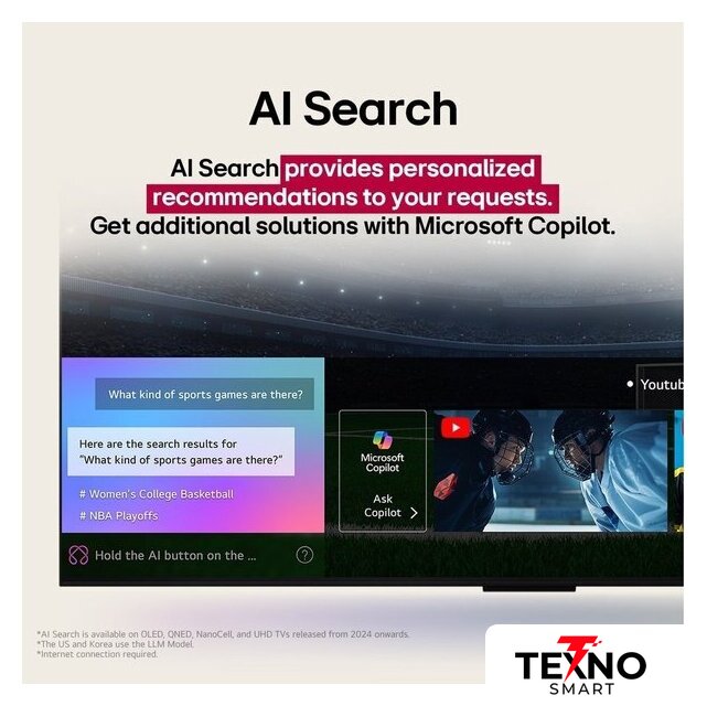 Оригинальные функции | - AI Voice ID- AI Chatbot- AI Concierge- AI Sound Pro- Home Hub- поддержка Matter- WOW Orchestra- Multi View- LG Channels- Gaming Portal |